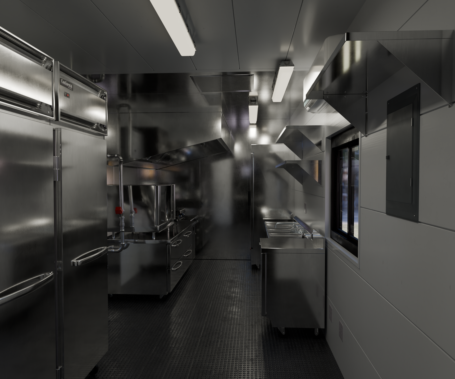 The Sear is a high-capacity 40′ modular kitchen designed for full-service food operations and event-scale food service. With expanded interior space, a 12′ kitchen hood, and flexible configurations for hot equipment, prep zones, and storage, it’s built to handle peak service hours. Whether stationary or on the move, Sear delivers commercial performance in a durable, code-compliant structure.